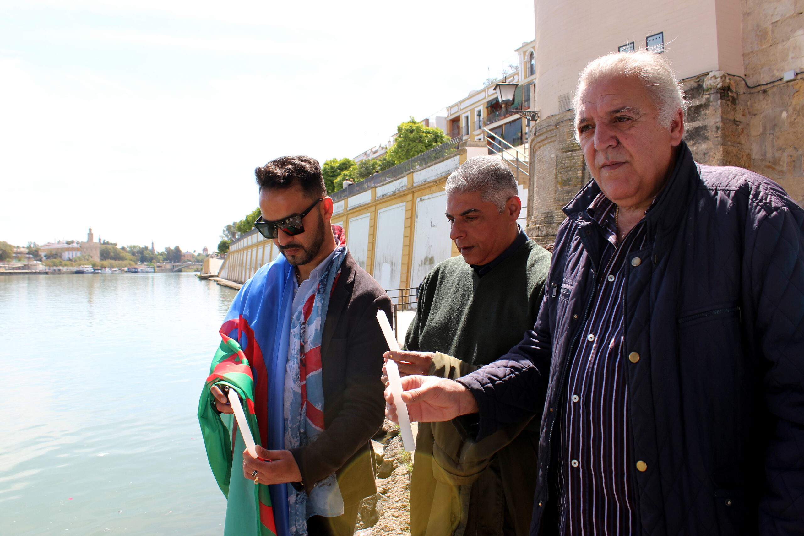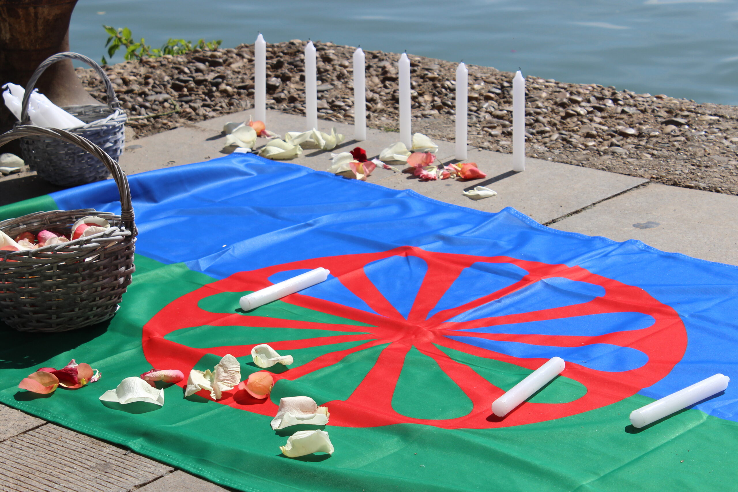 FAKALI, acompañada por representantes institucionales de la Junta de Andalucía y el Ayuntamiento de Sevilla, lleva a cabo la tradicional Ceremonia del Río, en homenaje a todas las víctimas del antigitanismo, en el Paseo de la O de la capital hispalense.